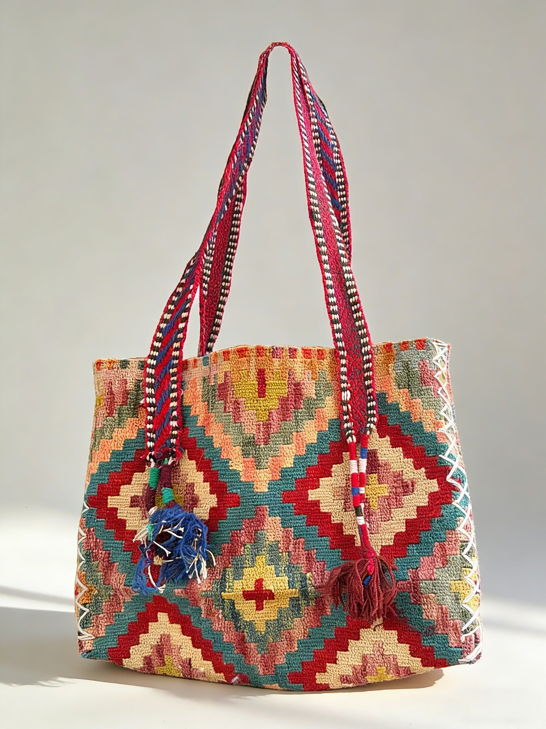 Discover the artistry of traditional craftsmanship with our handmade wool carpet bags. Each piece showcases authentic ethnic patterns woven into premium wool, creating a distinctive accessory that tells a story. Versatile and practical, these bags feature dual carrying options—wear them as a shoulder bag for hands-free convenience or carry by hand for a classic look. Perfect for travelers and adventurers, they complement any journey, weekend getaway, or casual outing. The durable wool construction ensures longevity, while the cultural design adds character to your wardrobe. An investment in both style and heritage.