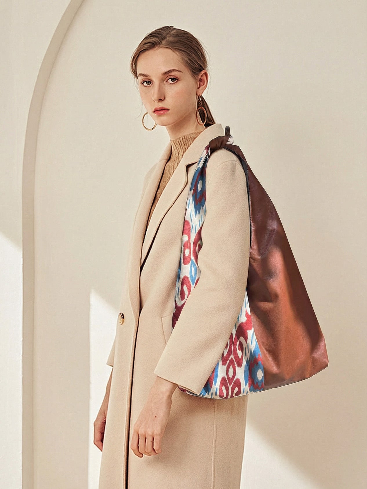 This red handcrafted tote bag is made from selected PU blend material, combining traditional craftsmanship with modern design. Its spacious capacity meets daily needs, while the thickened lining provides durable protection, and the magnetic closure ensures your belongings are safe and secure. The vibrant red color and textured surface showcase unique texture and style. Whether for daily commuting or weekend getaways, this bag is your ideal companion.